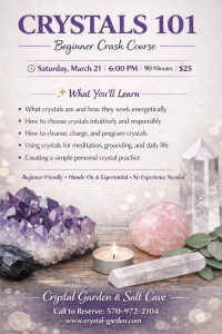 Curious about crystals and how they work? ✨ This beginner-friendly, hands-on class introduces the basics of crystal energy.