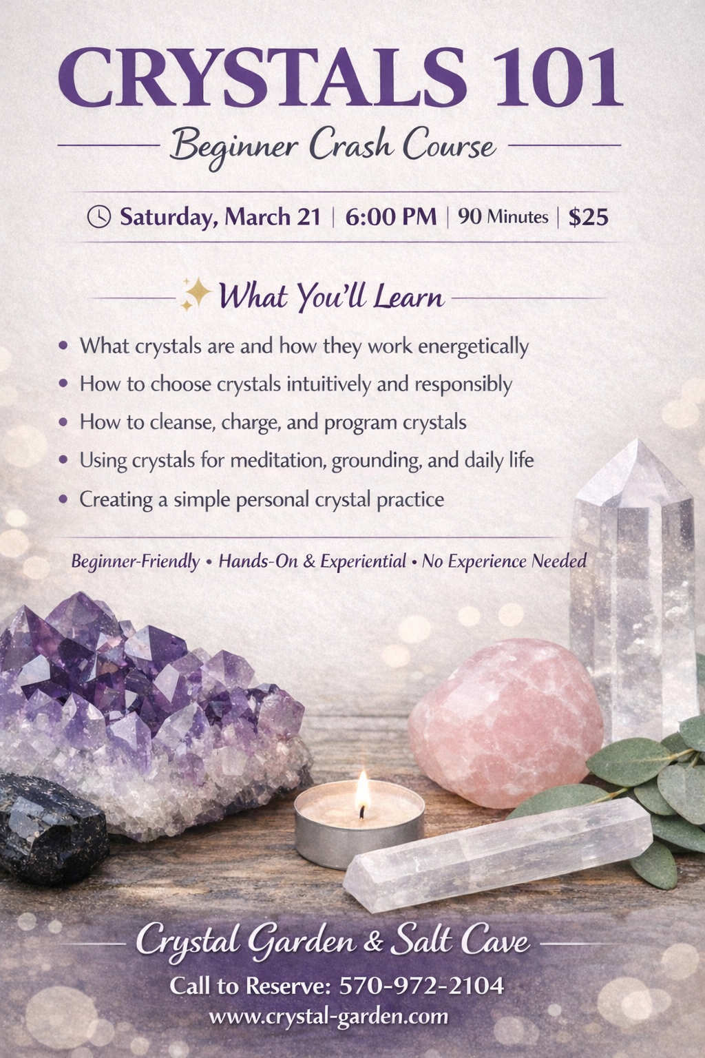 💎 Enjoy 15% off all crystal purchases after the class.